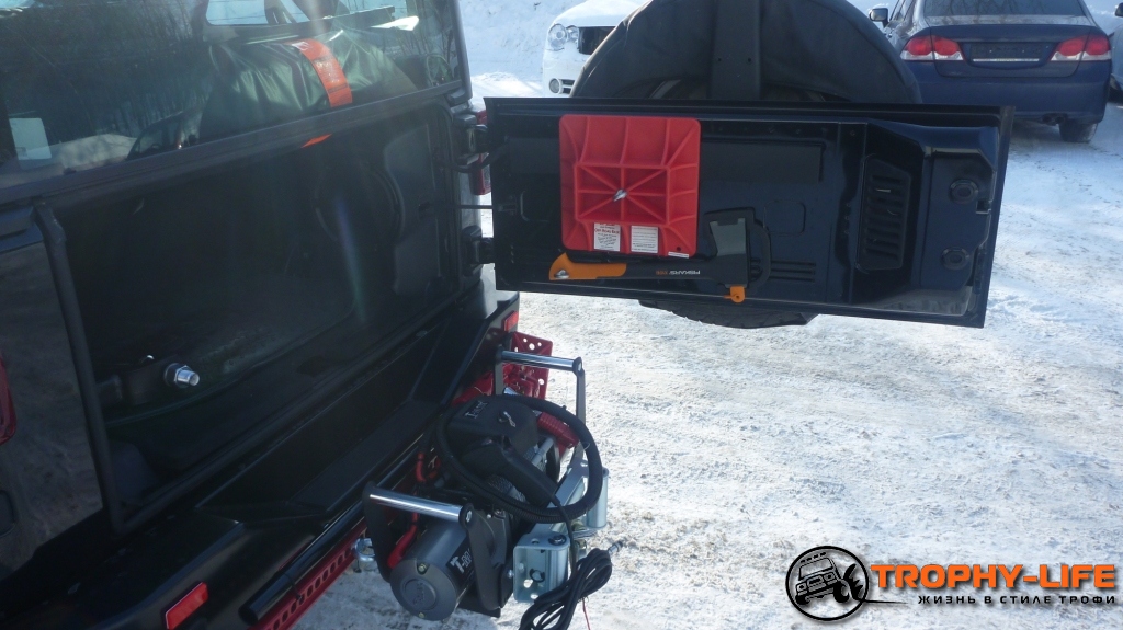 - на заднем бампере также закреплен Hi-jack; на двери багажника деланы крепления для подставки под Hi-jack и топора
