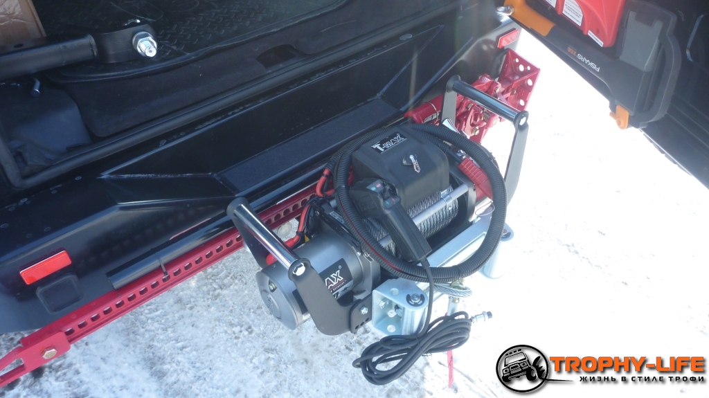 - в багажник выведен разъем для подключения съемной лебедки. Сама лебедка (T-max с тяговым усилием 4300 кг) установлена на площадке