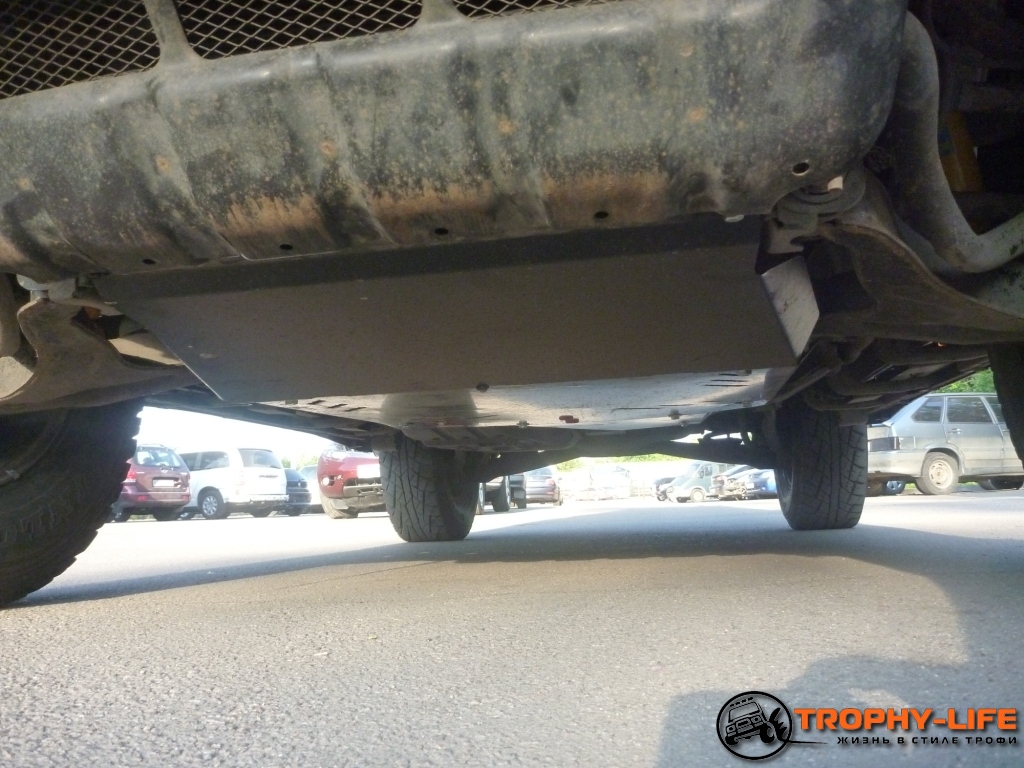 - дополнительно к штатной защите установлена трехмиллиметровая стальная защита двигателя, КПП и РК