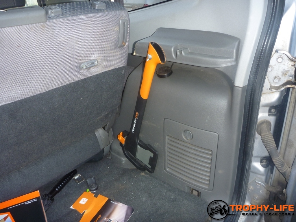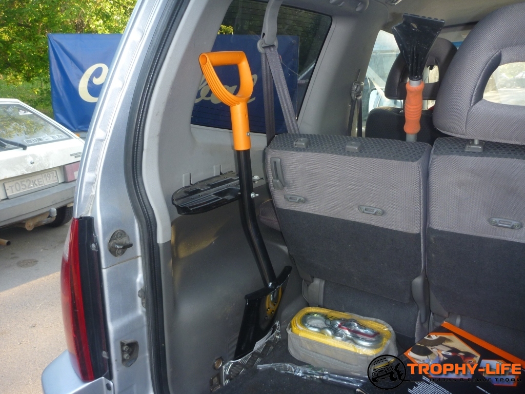 - топор и лопата закреплены в багажнике