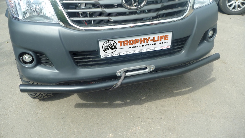 - Изготовлена и установлена силовая защита переднего бампера.