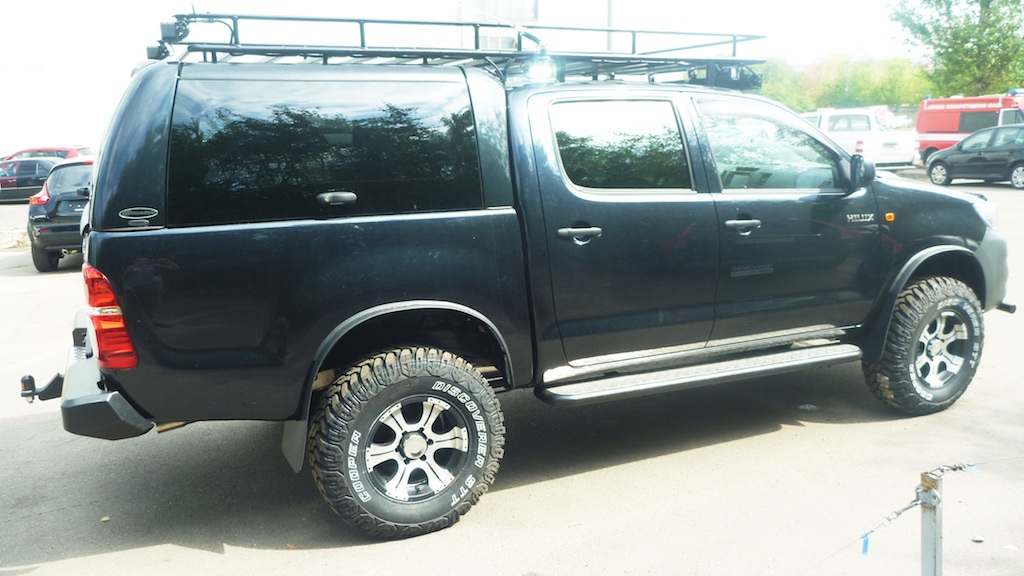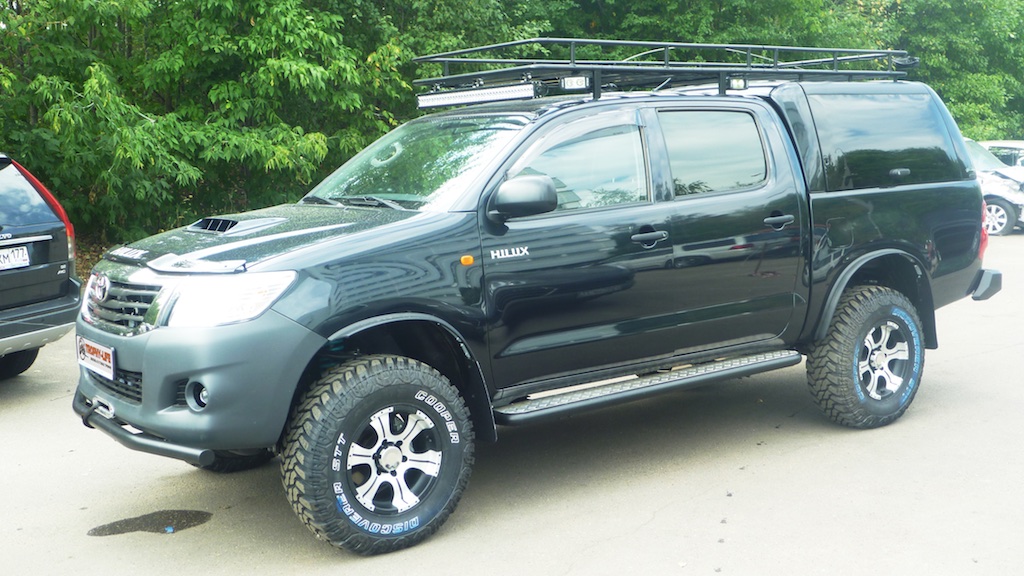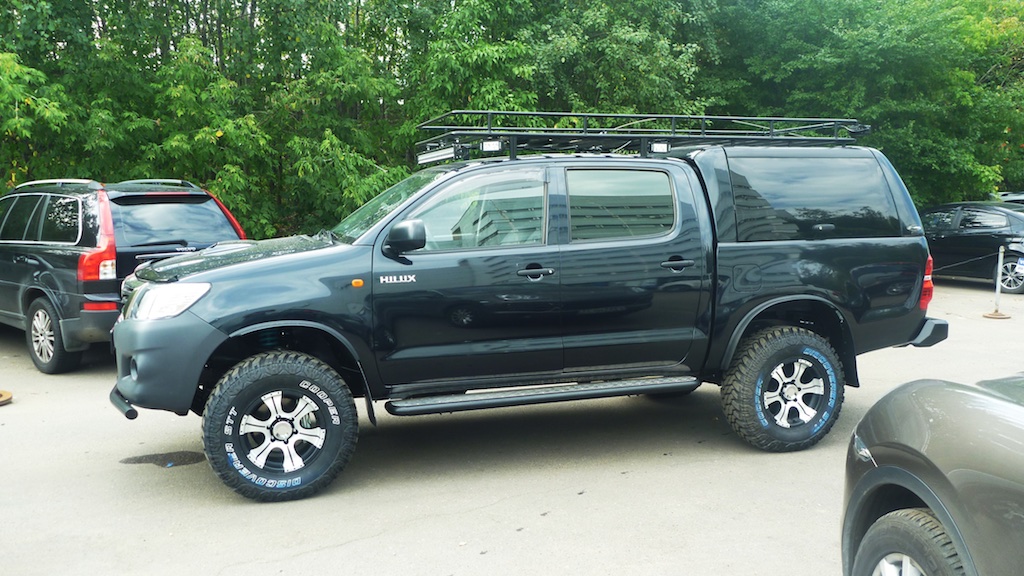 - Установлен лифт-комплект подвески Dobinson 2 дюйма, что позволило установить внедорожные шины Cooper Discoverer STT на дисках LF.