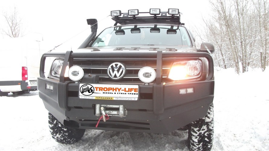- Установлена и подключена электрическая лебёдка самовытаскивания Come Up 9,5 с тяговым усилием 4500 кг в переднем силовом бампере;